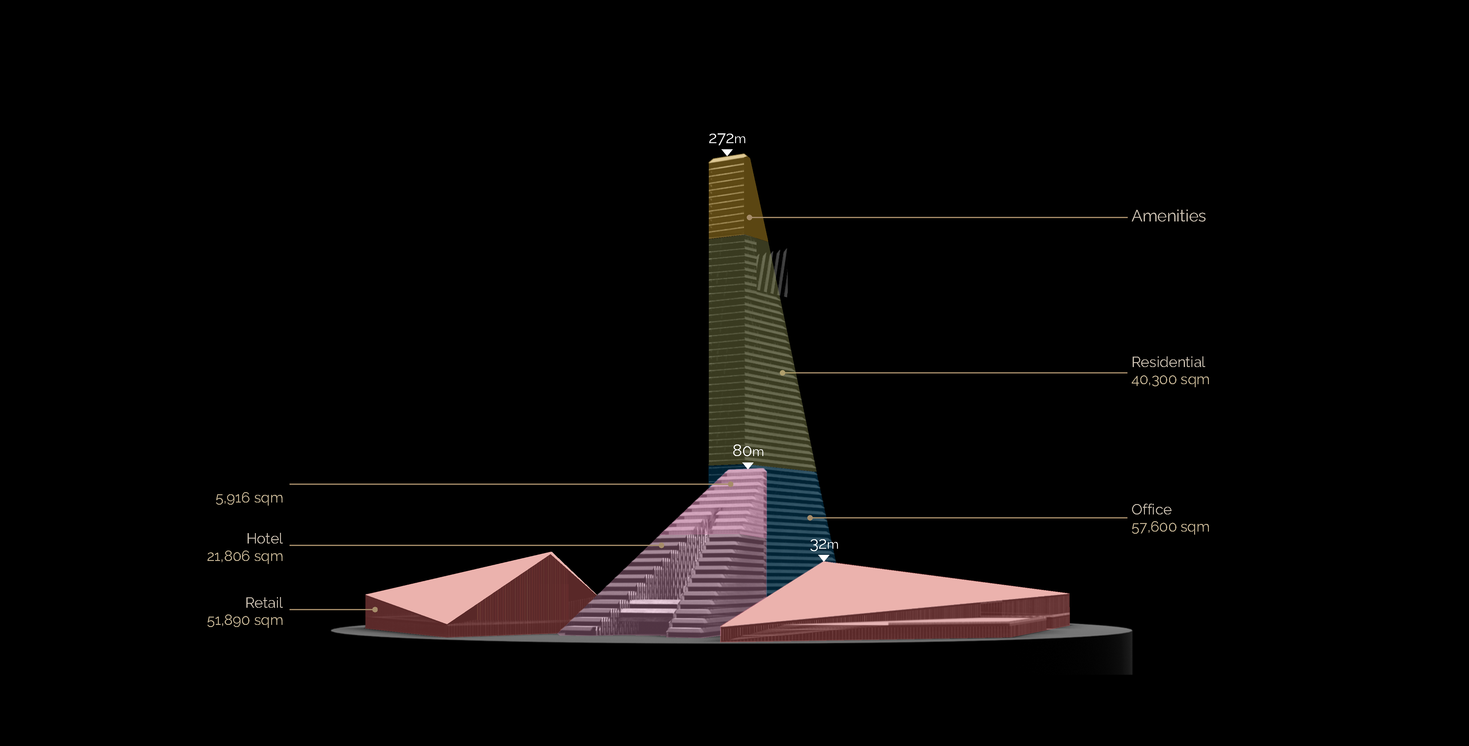 Tổng thể, dự án không chỉ là một tòa nhà mà là một “vertical district” – một khu đô thị thu nhỏ theo chiều cao, tích hợp đa chức năng trong cùng một hệ sinh thái kiến trúc.