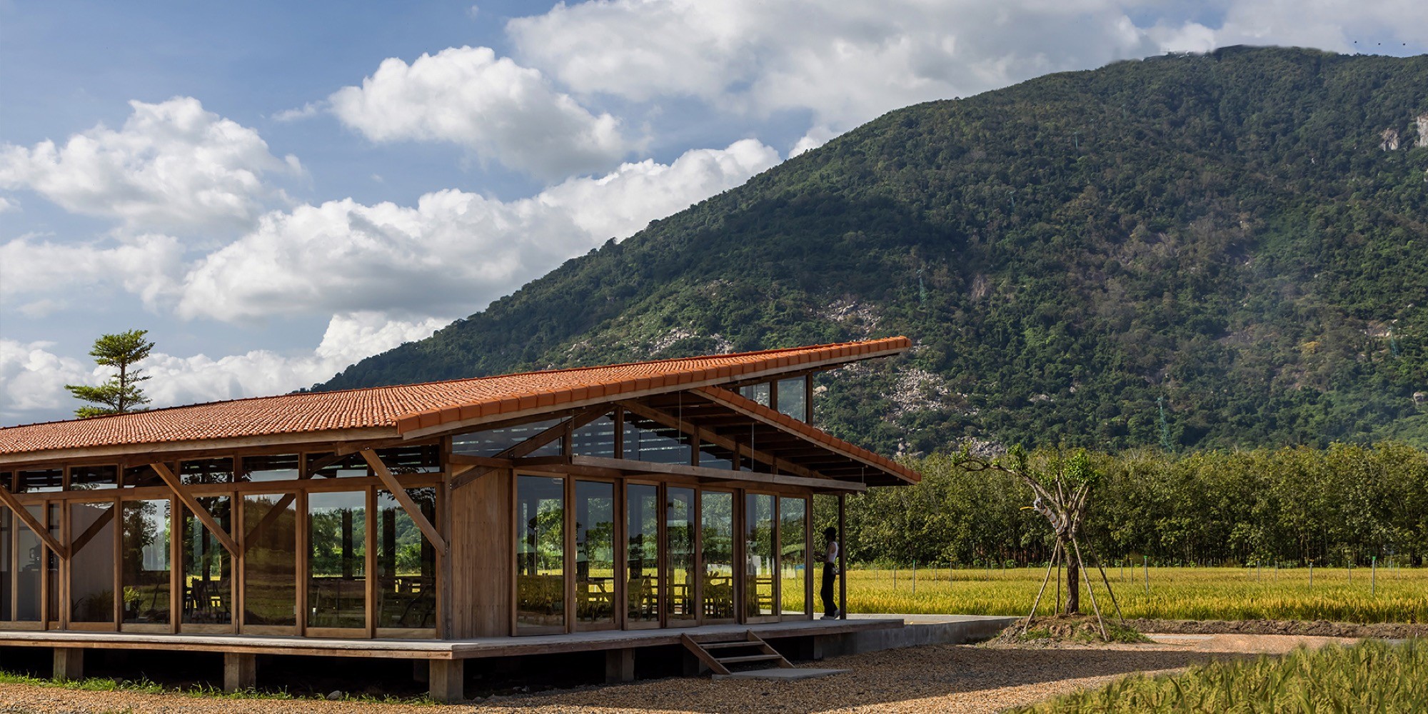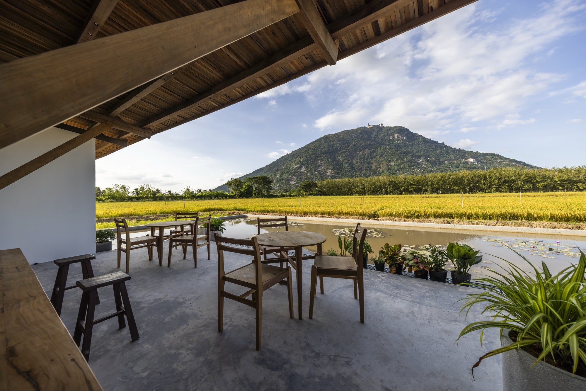 Hương Lúa Café với vị trí ngay dưới chân núi | Ảnh: Hiroyuki Oki.