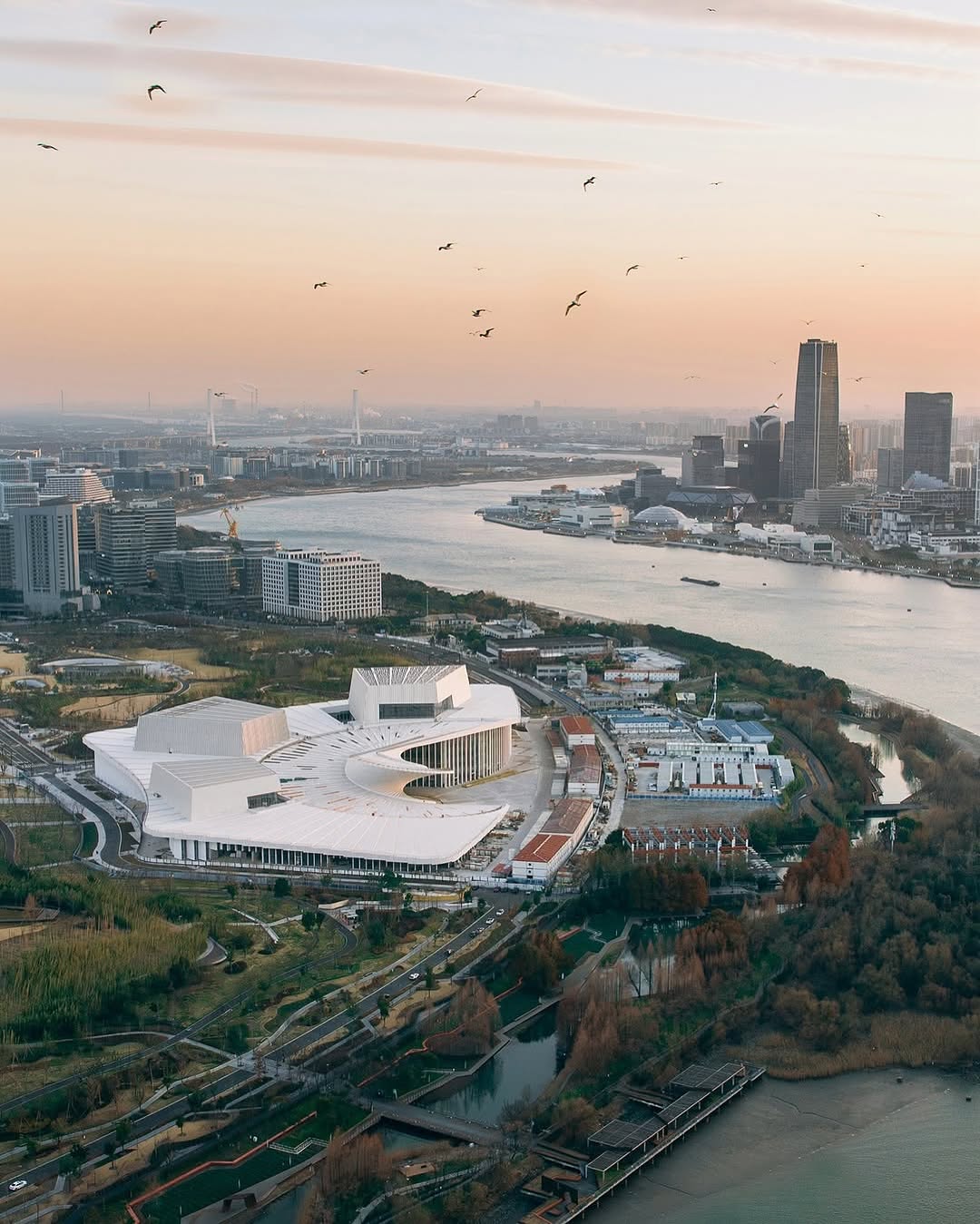 Bên bờ sông Hoàng Phố, Shanghai Grand Opera House vươn mình như một dải lụa xoắn ốc khổng lồ. Công trình không chỉ là nhà hát, mà còn là một không gian công cộng mở – nơi nghệ thuật, kiến trúc và cộng đồng giao thoa. Đây là dự án được mong chờ sẽ trở thành biểu tượng văn hóa mới của Thượng Hải, sánh ngang những công trình kinh điển trên thế giới.
