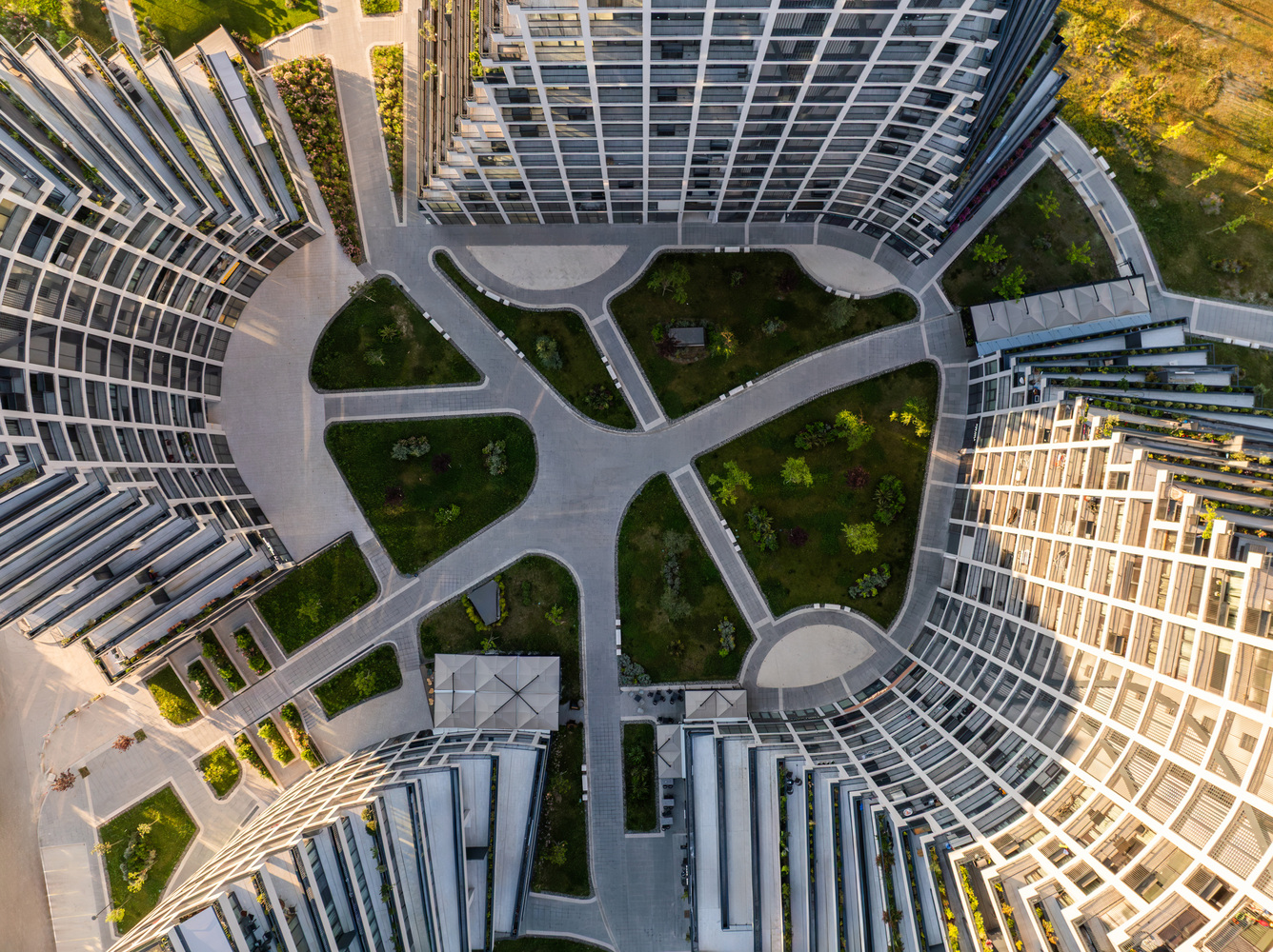 Các không gian công cộng được thiết kế như một mạng lưới liên hoàn: Lối đi bộ xuyên suốt, không gian xanh xen kẽ, khu thương mại và dịch vụ,...Những khu vực này được tách khỏi giao thông lớn, tạo nên môi trường yên tĩnh nhưng vẫn kết nối đô thị.