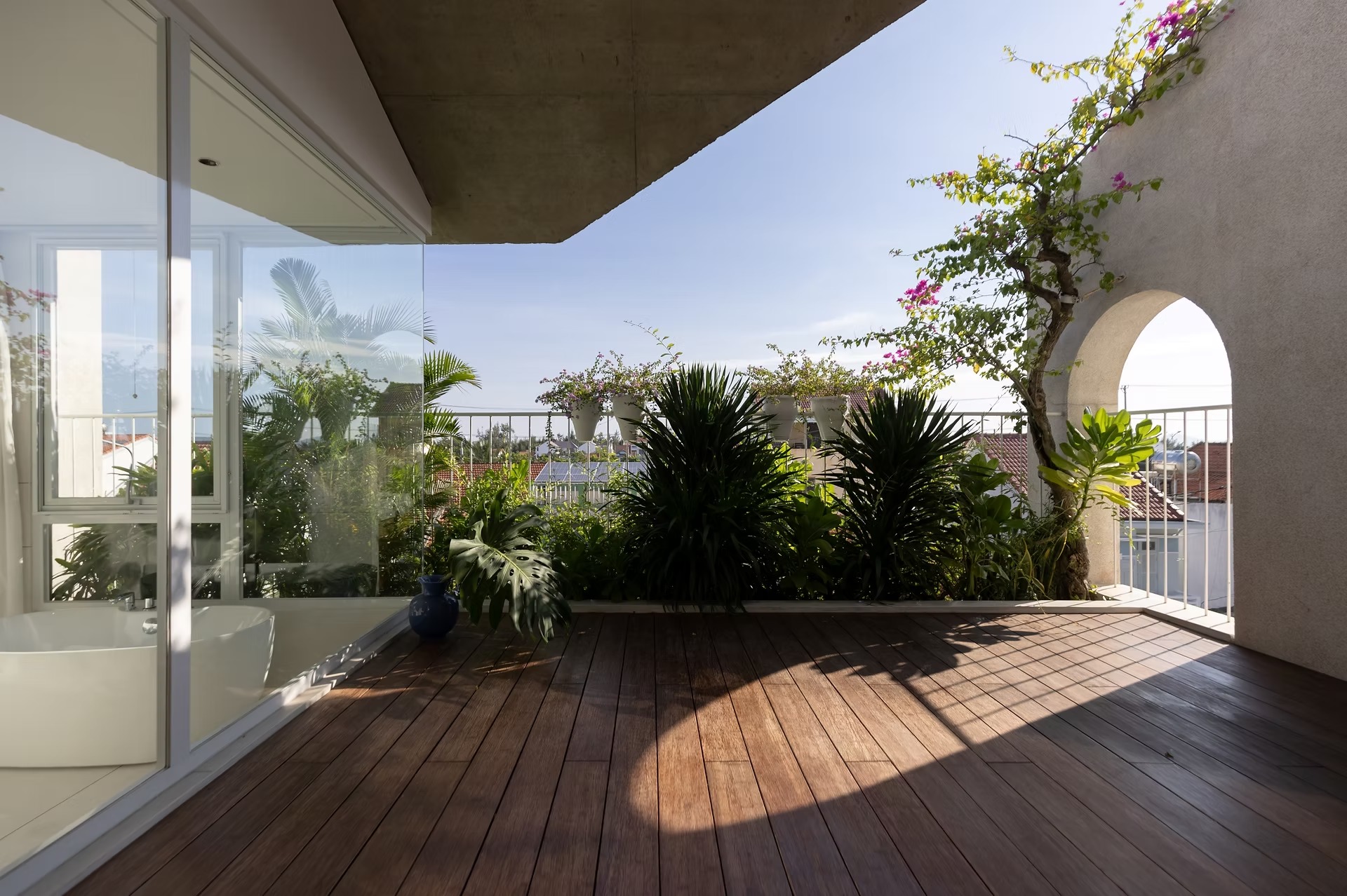 Giữa nhịp sống rộn ràng của phố Hội, H-A House hiện lên như một khoảng lặng. Ngôi nhà không phô trương, cũng chẳng tìm cách chiếm lĩnh thị giác, mà chọn cách hòa mình cùng thiên nhiên, để mỗi góc nhỏ đều mang hơi thở xanh và ánh sáng dịu dàng của miền Trung.